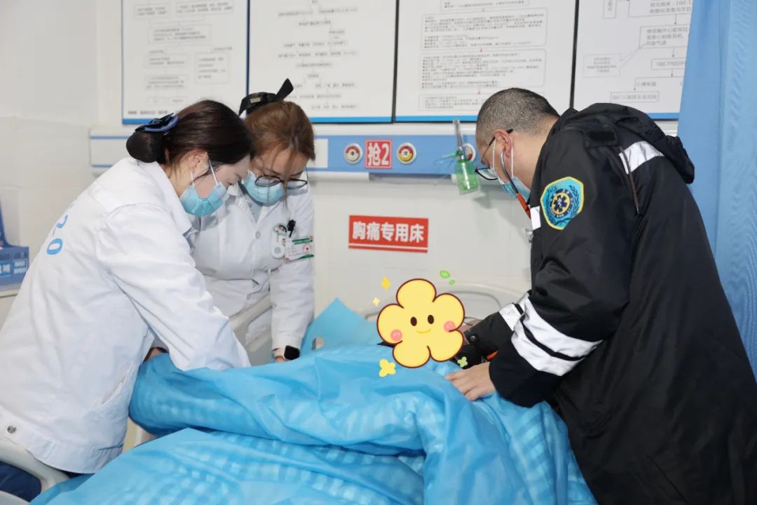 急救人员接手继续胸外心脏按压,并对患者实施体外除颤后,患者心跳呼吸恢复。急救人员并未松懈,一边救治一边迅速将患者朝我院转运。到达急诊科后,急诊医护人员立即为患者进行循环、呼吸功能支持。随后,张先生意识逐渐恢复,转入ICU进一步观察治疗。