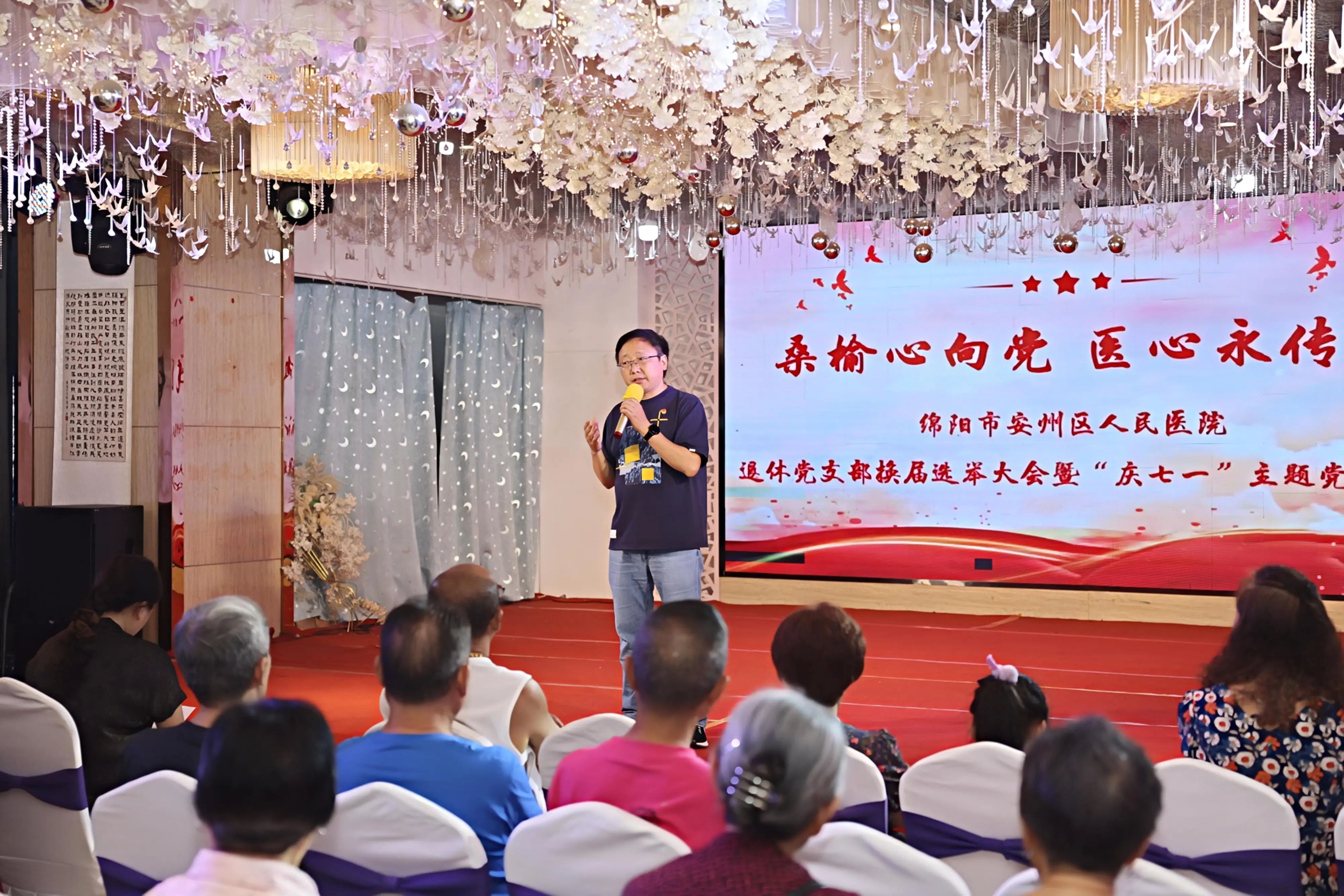 桑榆心向党,医心永传承。6月26日,我院退休党支部举行了换届选举大会暨“庆七一”主题党日活动。院党委副书记蒋清带领党办、纪检监察办、退休办负责人与退休党员、职工共同参加了活动。