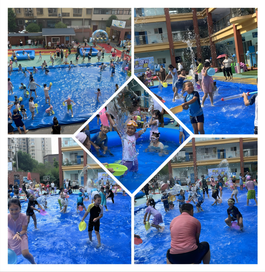 除了精彩的才艺展示,本次活动还设置了孩子们最期待的环节——欢乐戏水游戏!在清凉的水花大战开始前,全体家长和小朋友在老师的带领下,进行了充满活力的热身律动,瞬间点燃了全场的热情。随后,一场酣畅淋漓的戏水大战正式上演!孩子们在家长的陪伴下尽情玩水、泼水,欢笑声、尖叫声此起彼伏,水花飞溅中映照着张张无忧无虑的笑脸,将夏日的快乐推向高潮,也为幼儿阶段的托管生活留下了最清凉畅快的记忆。