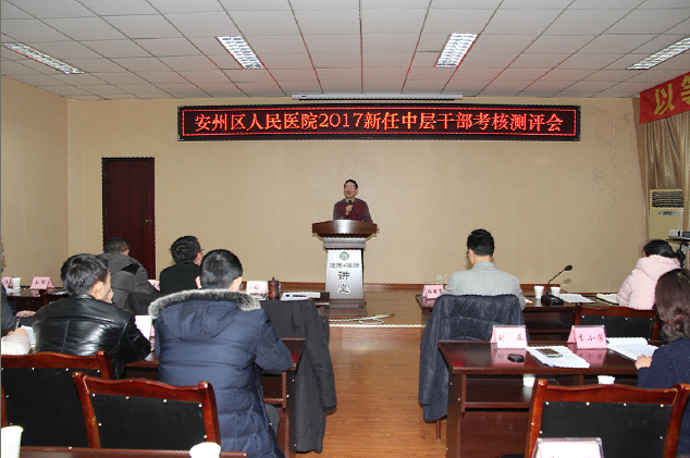 1月11日下午,我院在一会议室召开了2017年新任中层干部考核测评会,会议由党委副书记蒋清主持,院领导班子、全体中层干部及部分职工代表共计100余人参加了会议。