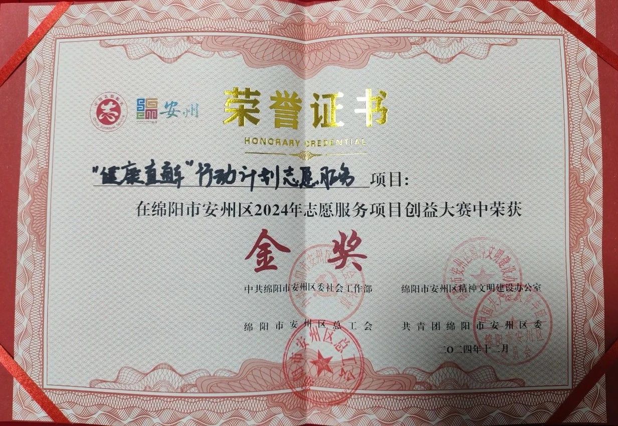 12月27日,绵阳市安州区2024年志愿服务项目创益大赛决赛闭幕。我院“健康直通车”行动计划志愿服务项目在56个参赛项目中脱颖而出,荣获大赛金奖。