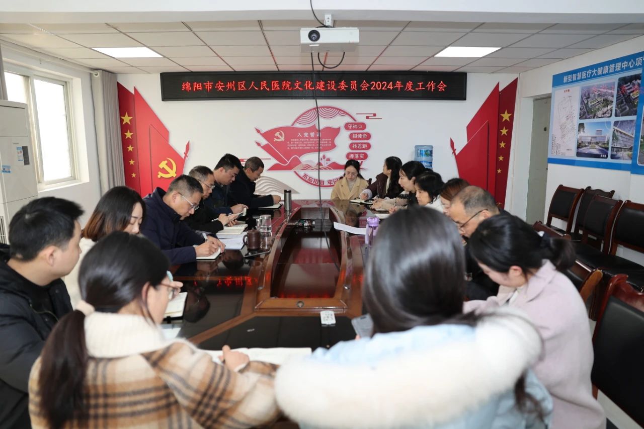 12月17日下午,我院召开了2024年度医院文化建设工作会。医院文化建设委员会全体成员参加了会议。会议由党委委员、副院长黄光强主持。会议通报了2024年医院文化宣传思想重点工作内容,审议了《绵阳市安州区人民医院文化建设调研报告》、《绵阳市安州区人民医院2024年文化建设工作报告》,为下一步医院文化建设工作指明了方向。院长孙军在讲话中强调了医院文化建设的重要性。他讲到,医院文化建设是软实力、凝聚力也是战斗力。医院职工拥有高度的文化自信,才能让医院的事业发展迸发出蓬勃的生命力与创造力。党委书记刘翱肯定了2024年医院文化建设取得的成绩,并在讲话中作了四点要求:一是要将文化建设与党建深度融合,以党建引领,以文化聚力;二是要将文化建设与医院高质量发展深度融合,为高质量发展注入动力与坚实支撑;三是要将文化建设与改善医疗服务、提升患者感受深度融合,注重医学人文,为患者提供有温度的医疗;四是要将文化建设与关心关爱职工深度融合,打造“家文化”,增进职工的归属感与幸福感。
