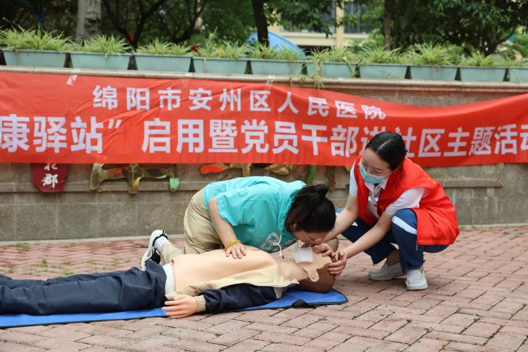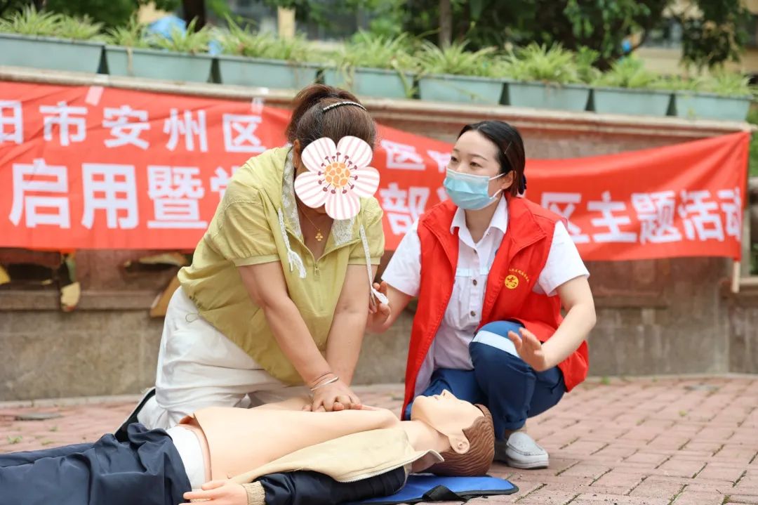 “手臂伸直,用上半身力量垂直下压!”急救培训场地上,党员志愿者利用模拟人道具演示心肺复苏技巧,手把手指导居民掌握“黄金4分钟”。