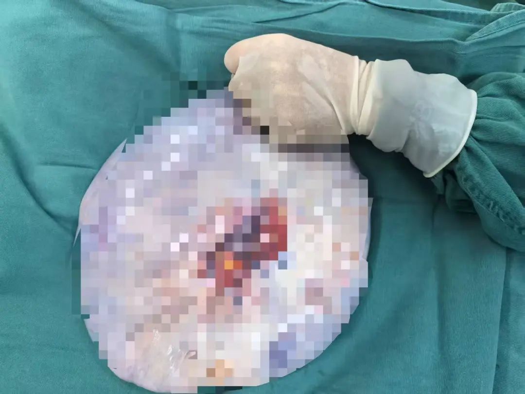 鉴于肿瘤体积巨大、与周围脏器(肠道、输尿管、膀胱)粘连紧密且血供丰富,妇产科主任文涛团队联合麻醉科、泌尿外科、胃肠外科等进行多学科会诊,制定了周密手术方案。5月18日,手术团队行剖腹探查术,首先抽出6000毫升囊液减轻腹腔压力,随后合力将重达数公斤的肿瘤完整移除。