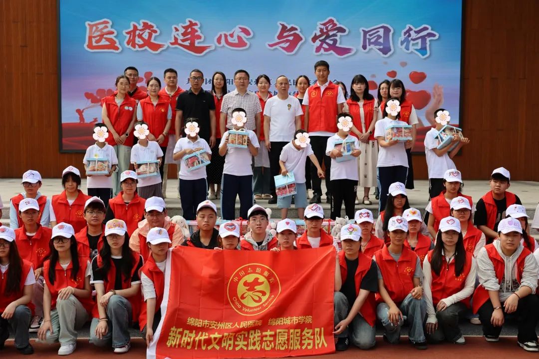 5月28日上午,在“六一”国际儿童节来临之际,我院党委、团委联合绵阳城市学院师生志愿者团队,走进安州区特殊教育学校,开展“医校连心 与爱同行”健康慰问暨公益陪伴活动,为孩子们送上节日温暖与健康关怀。