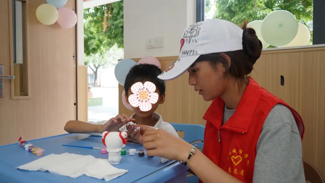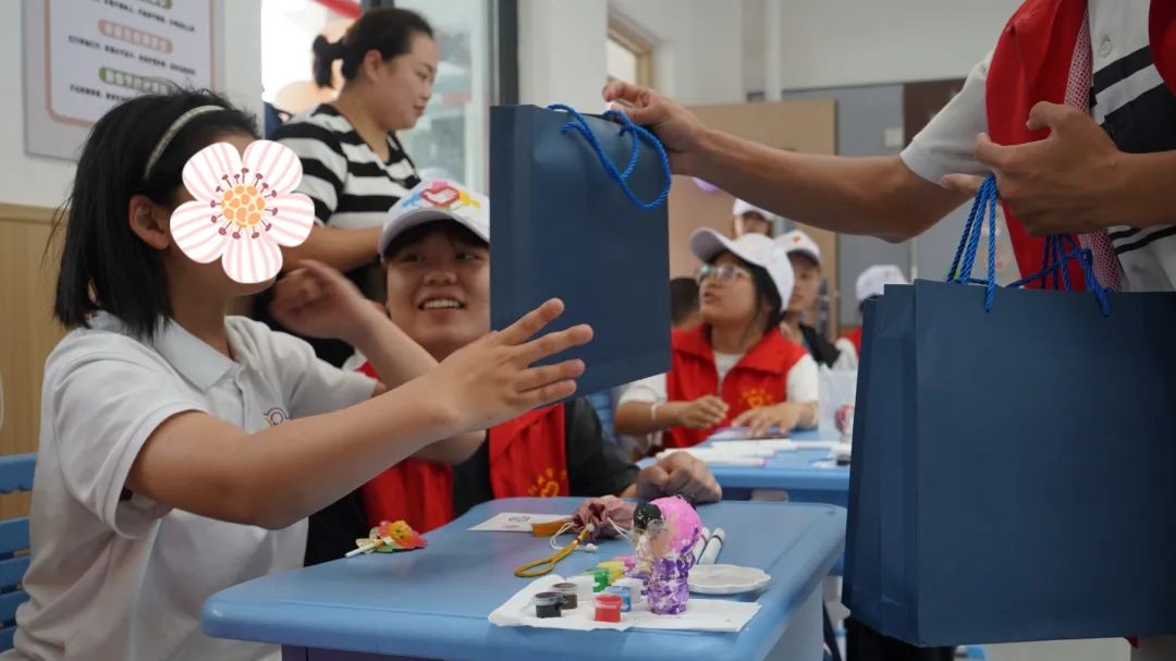与此同时,绵阳城市学院的志愿者分组开展“一对一陪伴”:在手工课上教孩子们制作彩绘石膏娃娃,组织趣味游戏,赠艾草香囊,让欢声笑语充满校园。