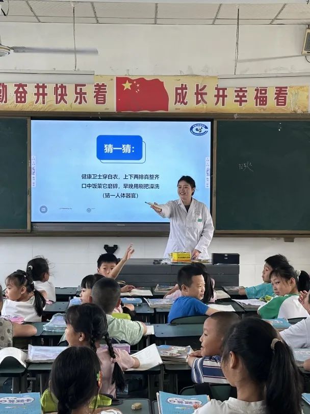 活动伊始,口腔科医生杨雪莲以生动活泼的动画和互动游戏开场,用通俗易懂的语言向同学们讲解“牙齿的结构”“龋齿的形成”“正确刷牙方法”等知识。课堂上,孩子们积极举手提问,在轻松愉快的氛围中掌握了实用的护牙技巧。