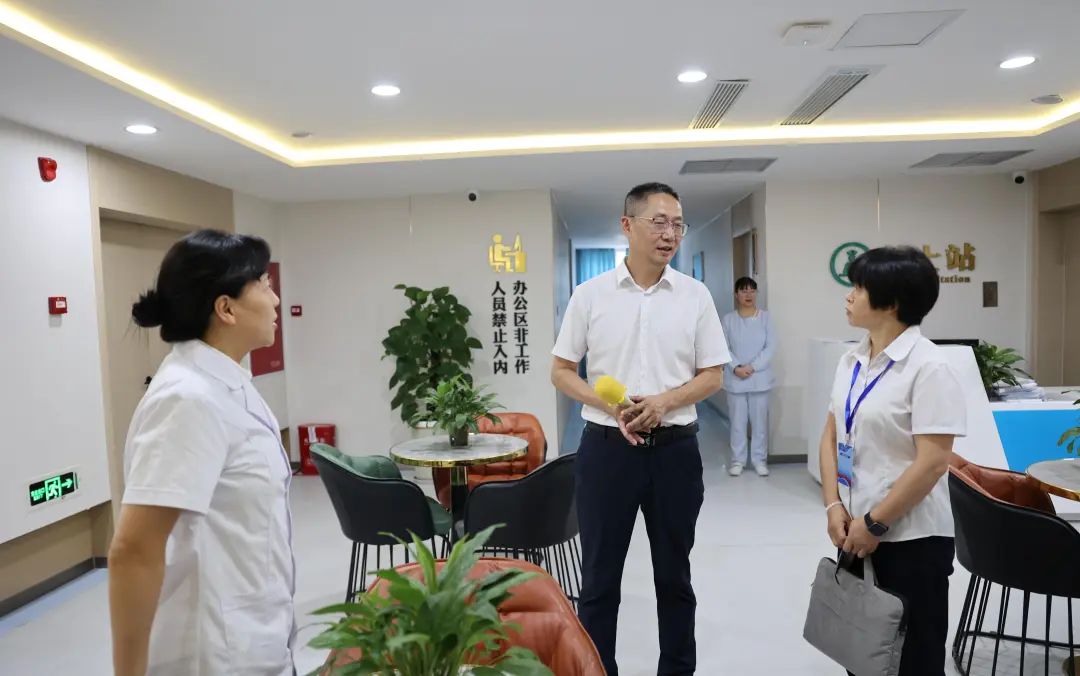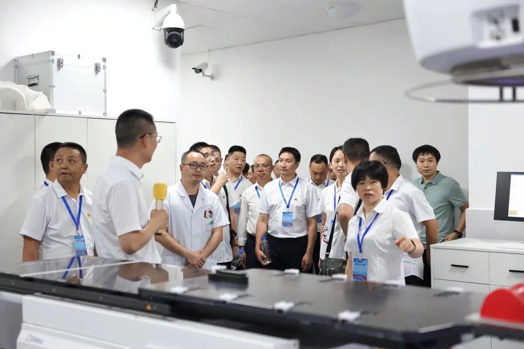 在文化长廊中,我院党委书记刘翱向来访人员介绍了医院的办院理念、历史沿革和近年来在党建引领下取得的各项发展成果。来访人员还实地考察了我院放疗中心与健康管理中心,听取了关于肿瘤精准放疗技术、个性化健康干预模式的介绍,双方就“医防融合”背景下健康管理服务的拓展路径进行了现场交流。