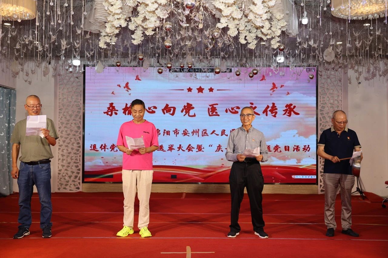 桑榆心向党,医心永传承。6月26日,我院退休党支部举行了换届选举大会暨“庆七一”主题党日活动。院党委副书记蒋清带领党办、纪检监察办、退休办负责人与退休党员、职工共同参加了活动。