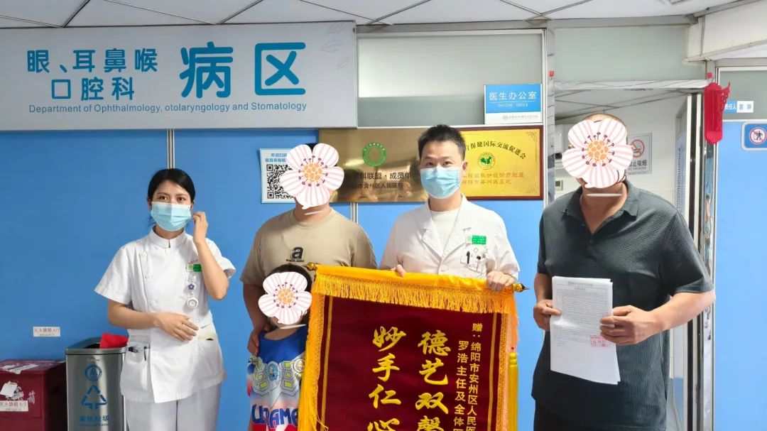 “罗浩叔叔谢谢您!”7月15日,7岁的小男孩出院时清脆的道谢声,连同家属悄悄准备的锦旗,驱散了炎热天气带来的疲惫,为我院眼、耳鼻喉科医护人员送来了沁人心脾的清凉。