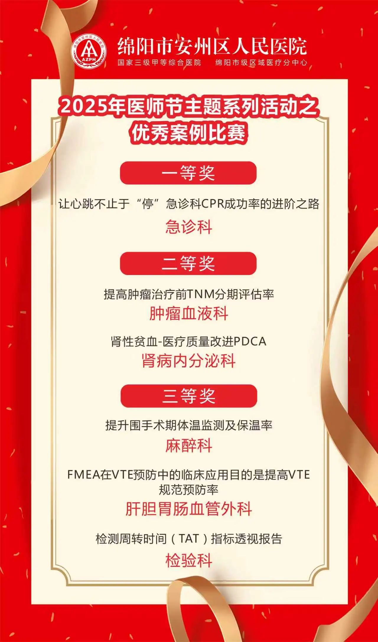 经过前期初评,9个科室入围决赛。决赛现场,各团队通过数据对比、流程拆解等方式,展现了医疗质量改进中的“真功夫”。最终,经过“技术创新度、质量改进成效、患者获益度、可推广性”四大维度评审,评选结果新鲜出炉: