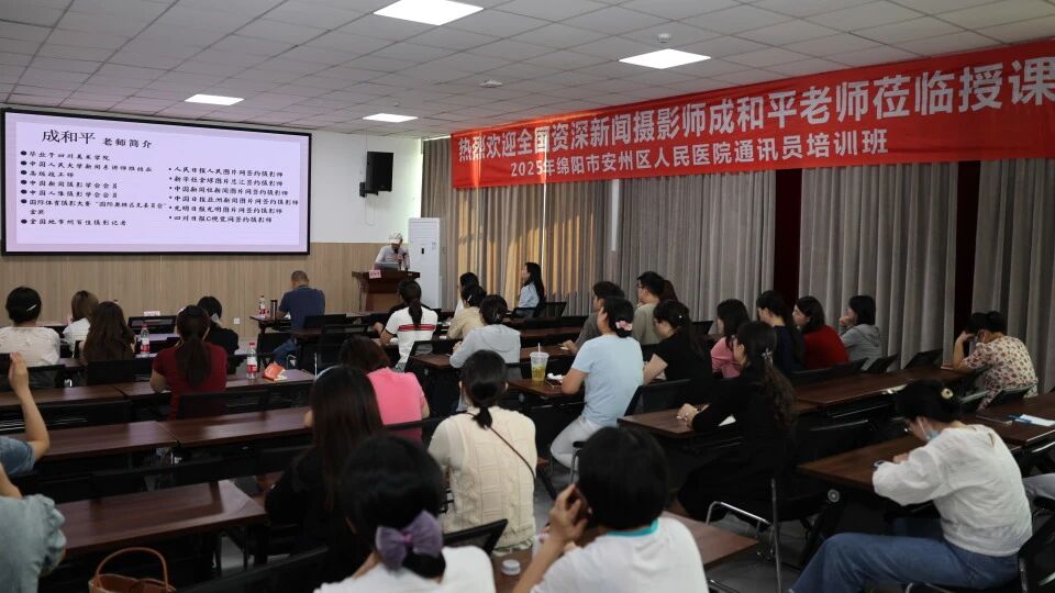 本次培训特邀全国资深新闻摄影师成和平授课。成和平老师为《人民日报》人民图片网签约摄影师、新华社全球图片总汇签约摄影师、国际奥委会摄影大赛金奖得主。他以我院服务基层工作为题材,拍摄的《义诊进社区》新闻图片作品,先后在《人民日报》《健康报》《绵阳日报》发表,受到各级媒体点赞。