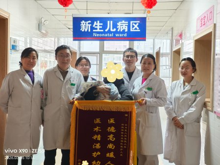 “谢谢你们,你们就是宝宝的第二个‘爸爸妈妈’!”出院当天,宝妈特意为儿科主管医生田德林及全体医护人员送上锦旗。一句质朴的话语,一面鲜红的锦旗,承载着家属最真挚的感激与敬意。
